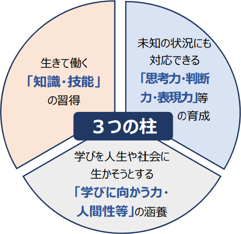 こうした思いを反映し、新学習指導要領では「知識・技能」だけでなく、「思考力、判断力、表現力」なども含めた「資質・能力の三つの柱」をバランスよく育むことをめざしています。