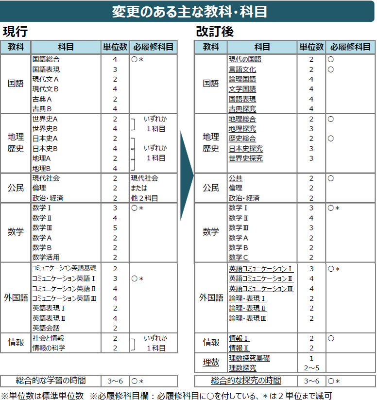 - 「地理総合」と、近現代の歴史を学ぶ「歴史総合」を新設(いずれも必履修科目)