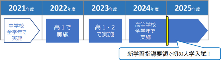 高等学校では、2022年度の高1生から年次進行で実施されています。