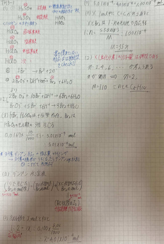 一度予習で解いた問題は、多くの人が復習すると思います。しかし、この復習のときに「問題をただ解いて終わった人」と「自分が犯しやすい間違いの原因を記録した人」ではこれからの成長に大きな違いが生まれると思います。私の場合は、復習していて疑問に思った知識、計算方法や有効数字など小さなことでもミスしたことは、たびたびノートにメモして模試の前など定期的に見返して、再び同じようなミスをしないように工夫をしていました。