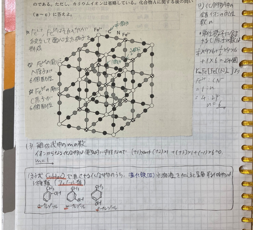 共通テスト対策の話です。模試や問題集で出た問題はまたいつか出る可能性があるので間違えたところは二度と間違えないようにまとめていました。問題を切り取ってノートに貼ってその下に解答と解説などを書いていました。まとめたものを次の模試の前などに復習するとよいと思います。無機化学の知識や典型的な計算問題など得点源になりそうな範囲は重点的に!