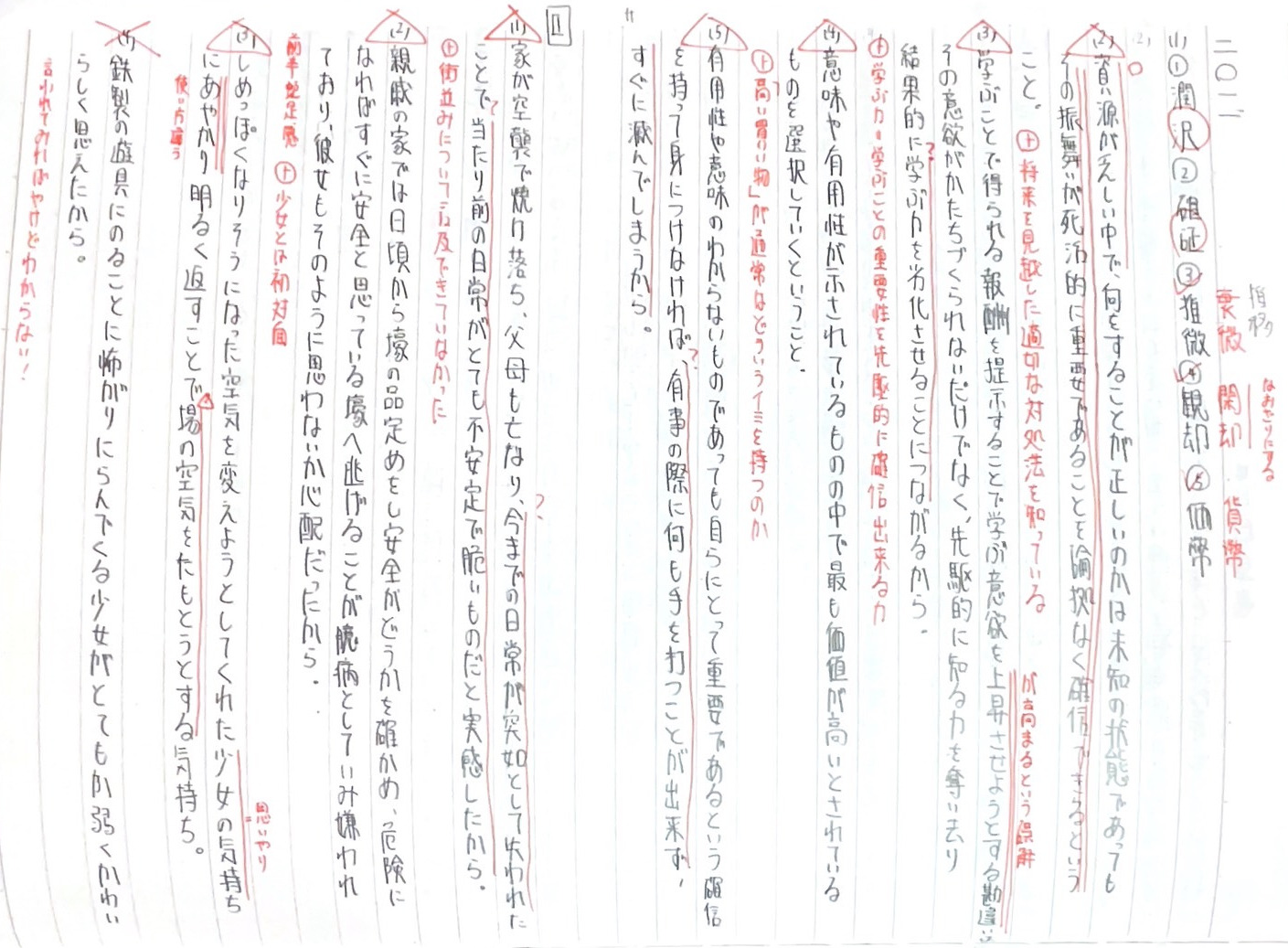 分析を基に自分の解答に線を引いて突っ込みを入れていました!分析を文章にして書くことで、心の中で思っているよりもより記憶に残りやすいですし、解答と間違った点がまとまったノートになるため、見直せば自分の間違いの傾向が分かる最強の復習用ノートになります。実際に私はこのノートを試験会場に持っていきお昼ご飯を食べながら眺めていました!!