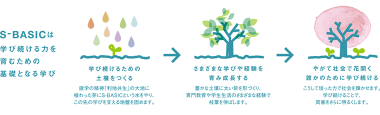 CHECK!社会を生き抜くために必要な基礎的な力を育む。全学共通の基礎教育科目(S-BASIC)