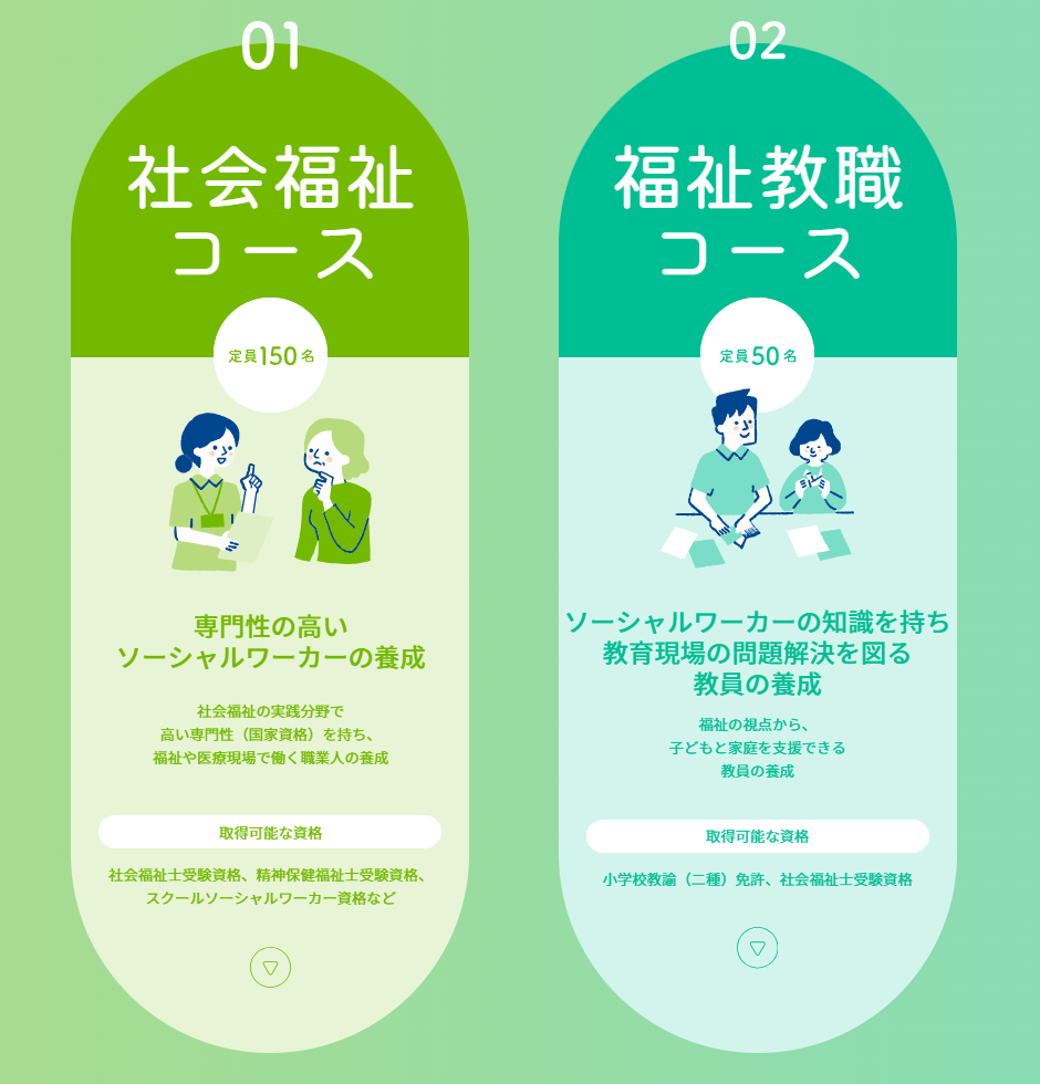 2025年度、社会福祉学科内に「社会福祉コース」と「福祉教職コース」の2つのコースを設置しました。