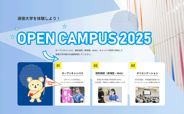 淑徳大学の入試は、多様な選択肢を提供しています。専願と併願とを選べる総合型選抜のほか、学校推薦型選抜、一般選抜、大学入学共通テスト利用選抜など、受験生の得意分野や個性を最大限に活かせる形式で挑戦できるため、自分に最適な方法で合格を目指せます。