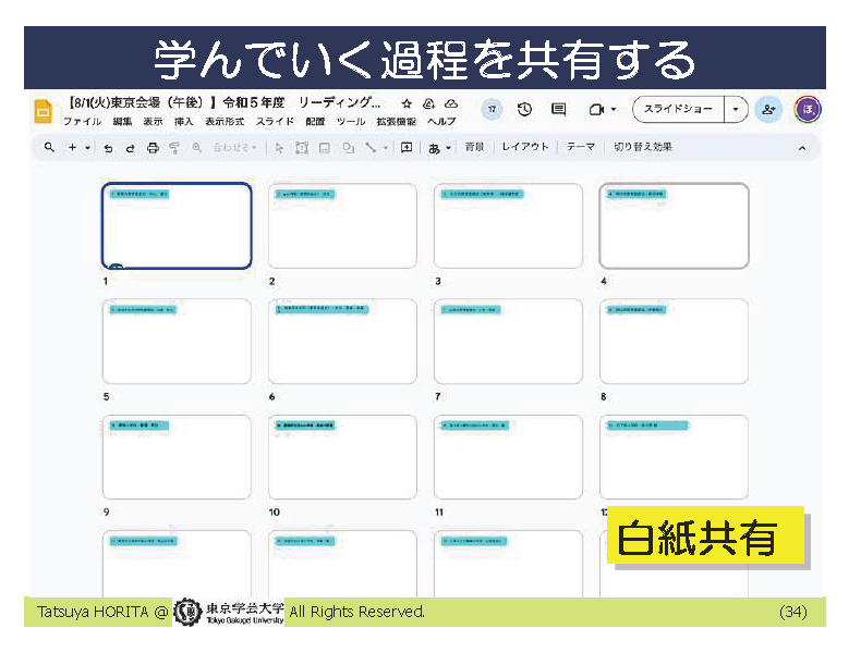 もちろん、最終的に答えが間違うときもあります。そのために、教科の学びとして先生がまとめる場面が当然必要ですが、これからの時代に学び手を育てることが重要であるとすれば、このようなクラウドを活用した学習環境でそれを行うことが大事なのです。