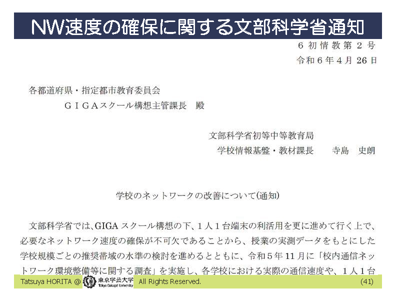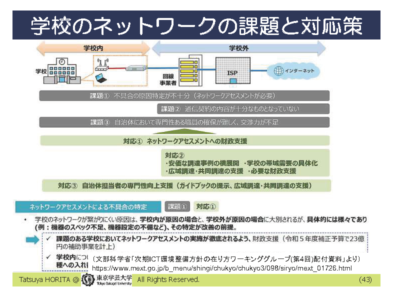 今後デジタル教科書はもっと普及するでしょう。学力調査もオンラインで行われるようになる。そうなったときに、ネットワークが脆弱なままでは、多分かなり苦しいことになります。