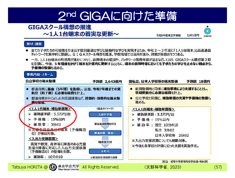 この第2段階のGIGAは、1台当たりの端末の価格を4万5,000円だったものを5万5,000円としていますが、円安などいろいろな影響が起きています。