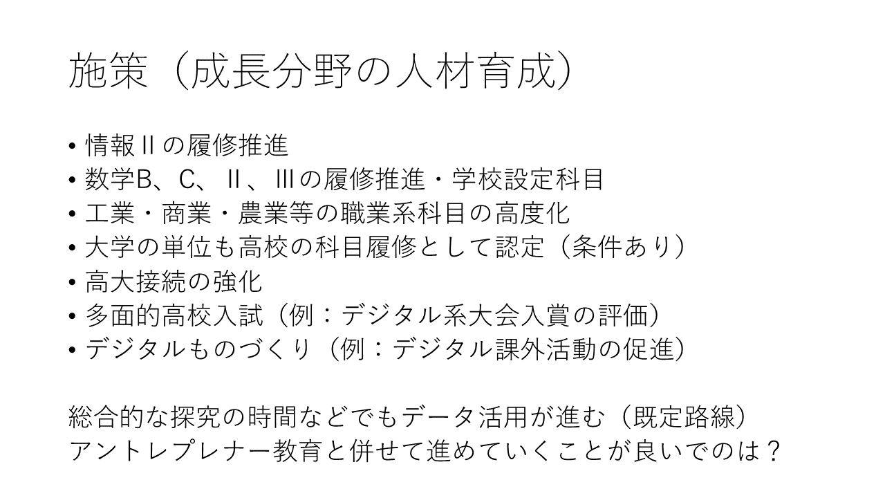 具体的には、こちらのスライドに挙げた施策を進めようとしています。