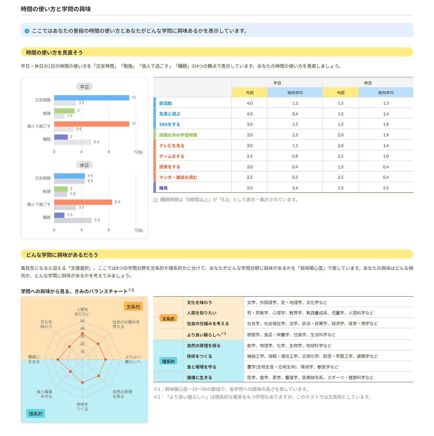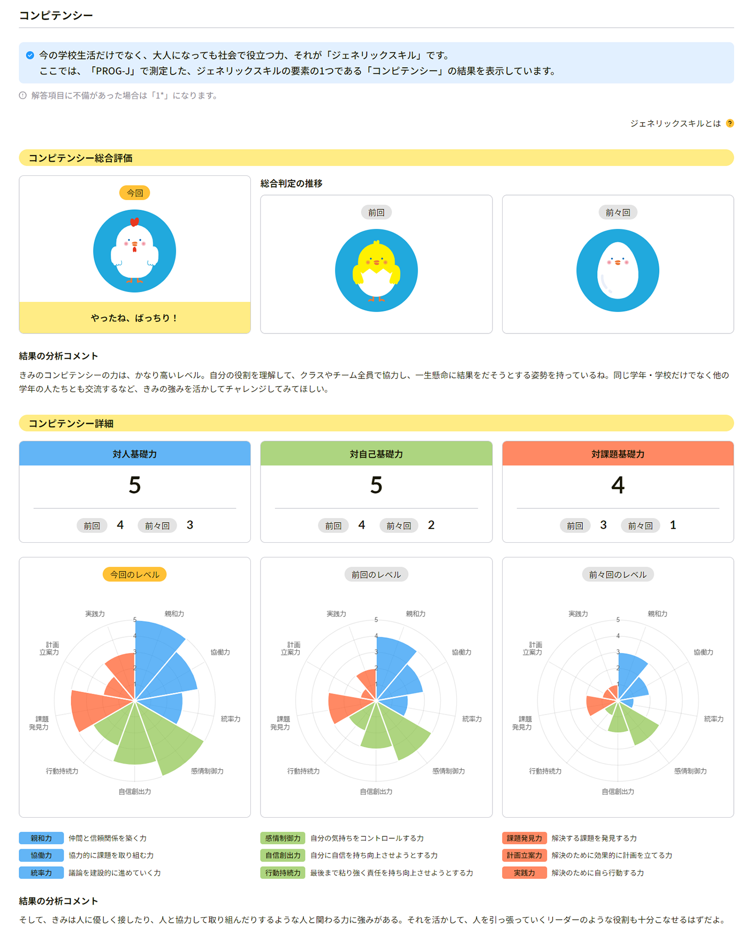 みらいPASSジュニアでは、生徒の特徴をさまざまな切り口で評価しており、生徒が受験結果を振り返ることで、ジェネリックスキルやキャリア意識の醸成を促すことができます。