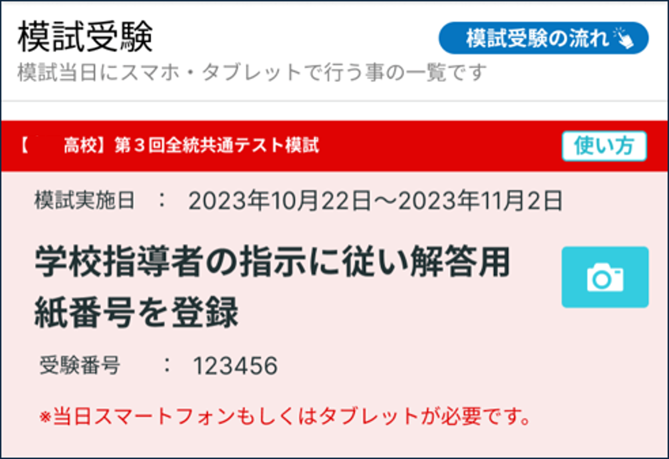 - 自校実施:受験当日まで申し込みが可能ですので、生徒に申し込みを実施させてください。